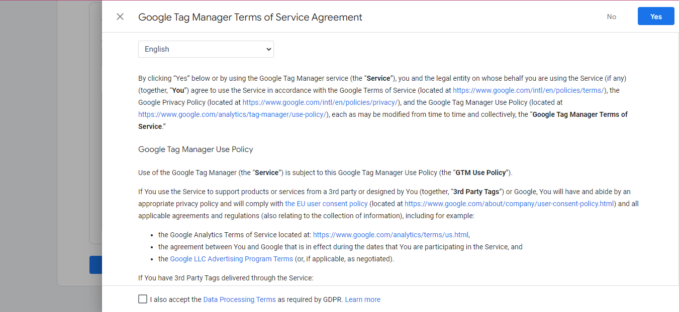 To set up integration with Google Tag Manager, you first need to create account of Google Tag Manager using this link.