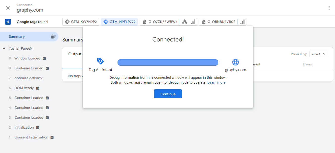 We can even verify whether the website is correctly integrated with the Google Tag Manager or not.