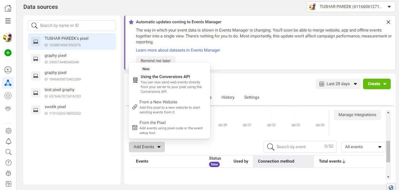 To start creating different events on the Pixel, we need to follow the given path from the home of the Meta Business Manager.