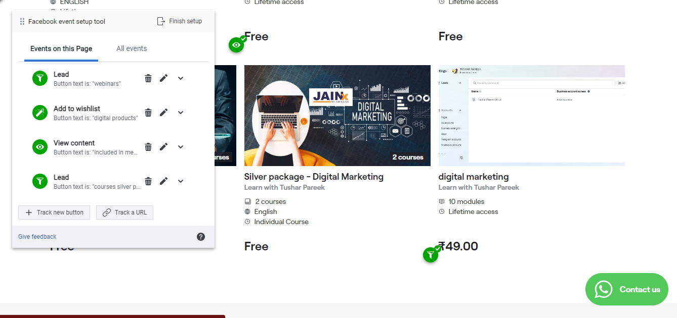 Here, all the buttons on the website will automatically be highlighted, you just need to choose a button which you want to track and assign that button, a predefined event name.