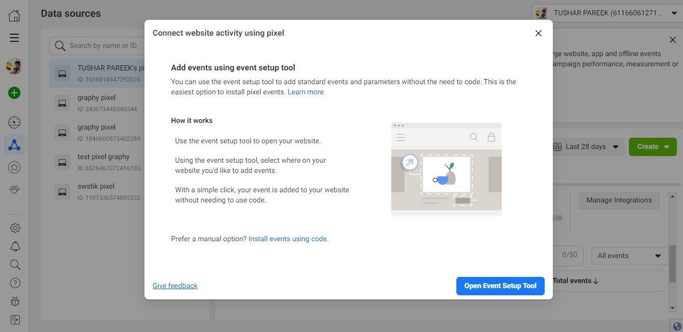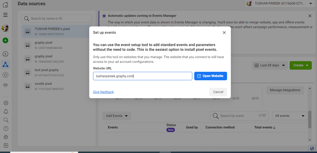 Here, you need to click on the “Open Event Setup Tool” button. After clicking the button, a new pop-up will be shown where you need to put the website URL.
